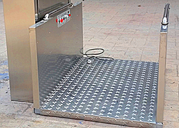 無障礙升降平臺由升降平臺、導軌和驅動箱等三大部分組成;升降平臺是由C型鋼材為主體部分,采用“翹板自復位開關操作運行”,無基坑式安裝,直接固定于混凝土地面(無地坑室外應用情況下,平臺下方混凝土地面不得低于周圍地面),手動液壓閥打開時升降底板能手動下降;液壓驅動,升降平穩,安全,外部采用拉絲不銹鋼材料和鋁板靜電噴塑機箱/面板,外形小巧美觀,不阻礙周圍環境。殘疾人升降機直接安裝于地面,無需土建配套地坑,施工簡單,產品放置戶外不易積水,不易生銹,維護簡單。